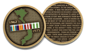 The skilfully crafted design featured in this collection integrates the Vietnam map and campaign medal ribbons as well as dramatic images of Australian Forces Vietnam National Memorial in Canberra. This timeless design was first released in 2011.